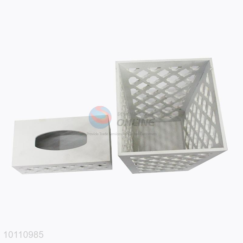 Wooden Hollow Out Paper Towel Box and Garbage Can for Home Use