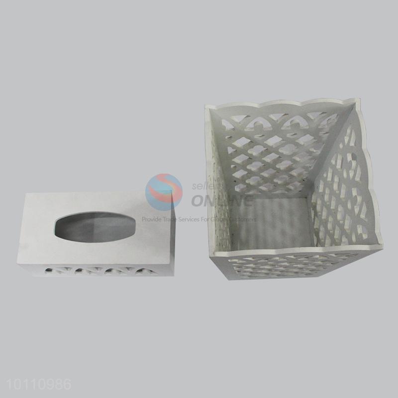 Hollow out Indoor Decorative Wooden Paper Towel Box and Garbage Can