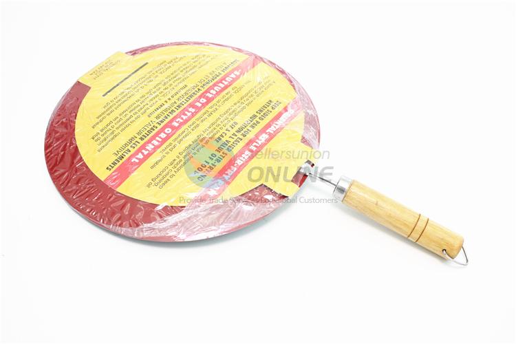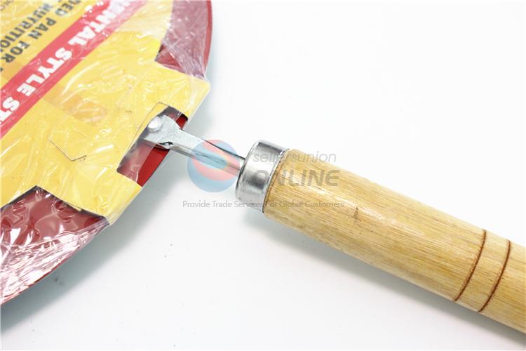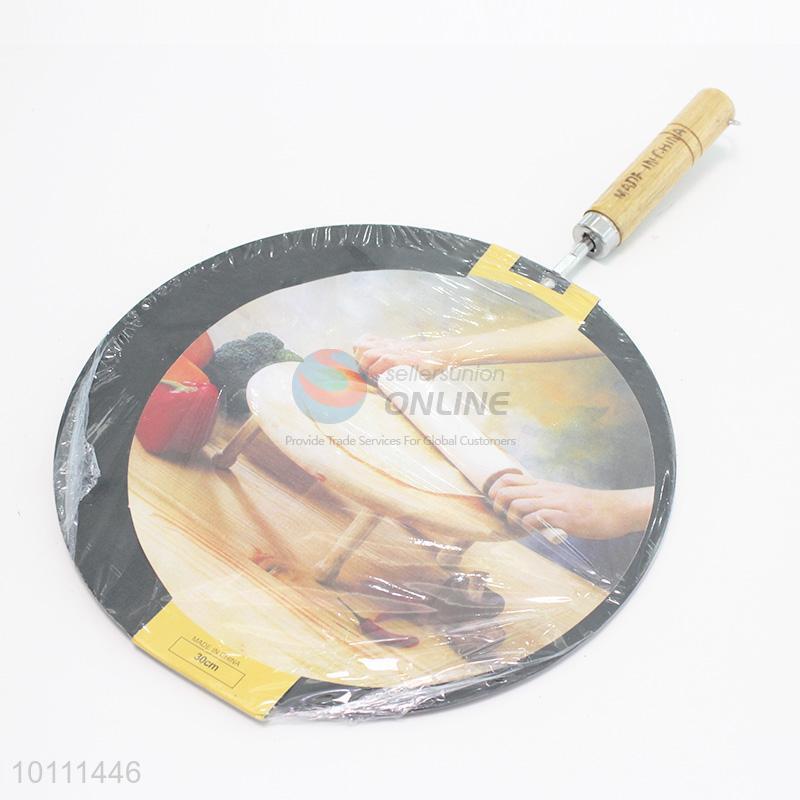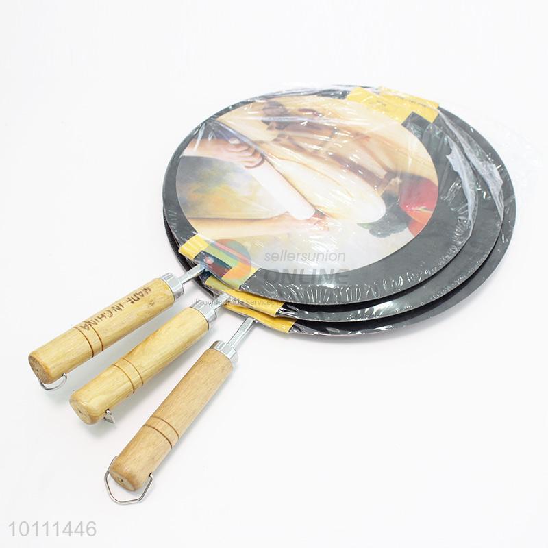 3 Sizes Flat Fry Pans Frying Pot Pizza Pots Tools with Wooden Handle