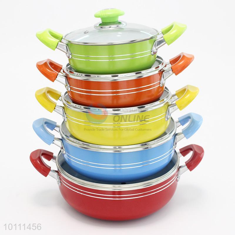 10 Pcs/Set Colorful Ceramic Stockpot with Lid Cookware Set