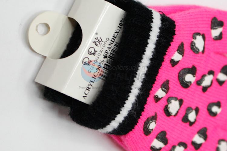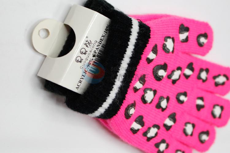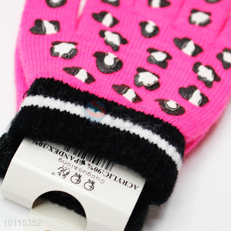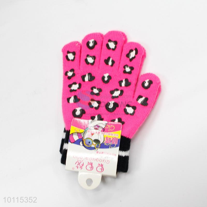 Comfortable rose red knitted children gloves