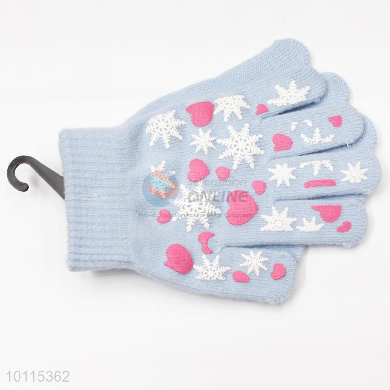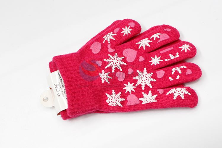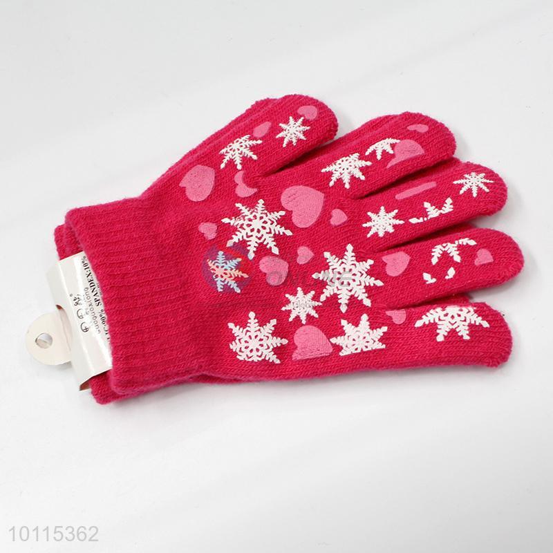 Rose red snowflake knitted children gloves