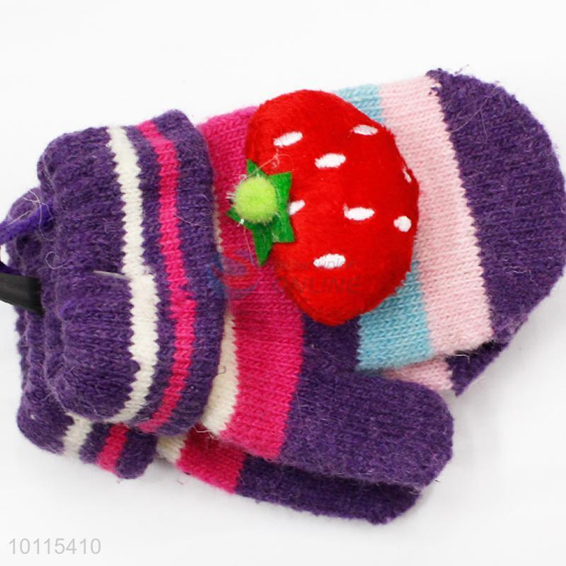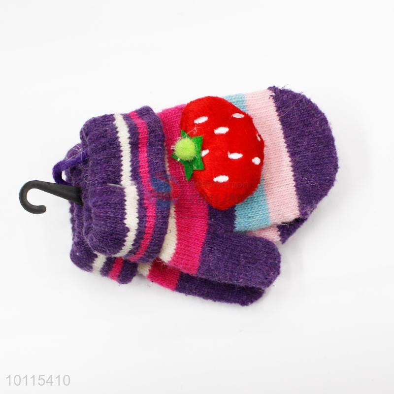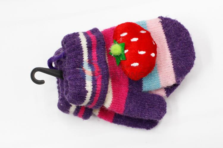 Strawberry children knitted gloves
