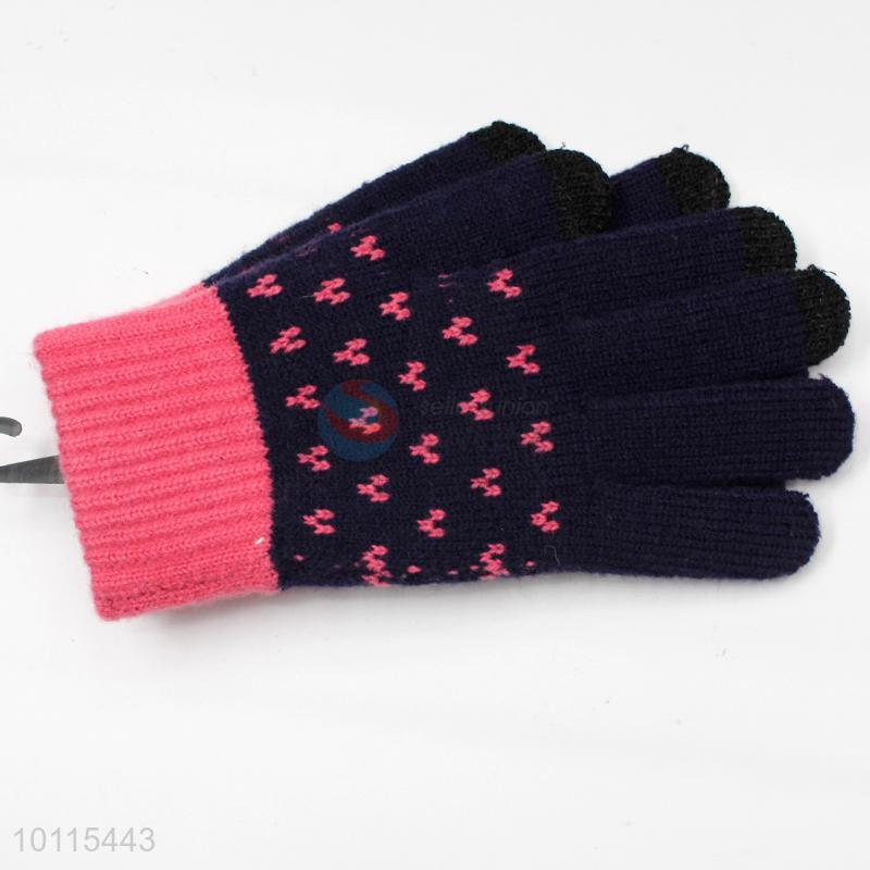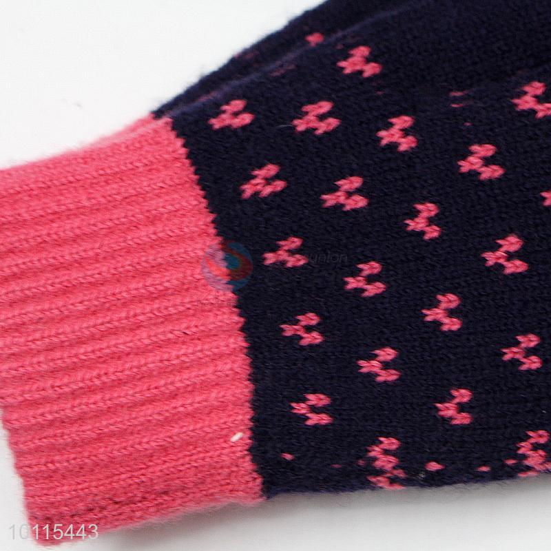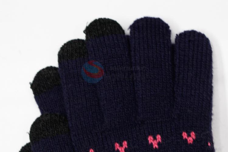 Dark blue acrylic knitted gloves