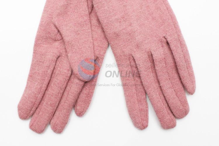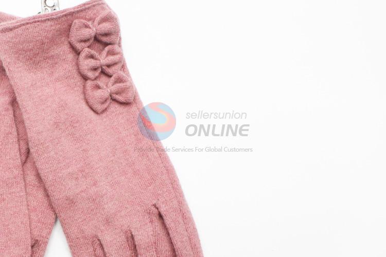 Gentlewomanly Pink Winter Wool Gloves with Bowknot