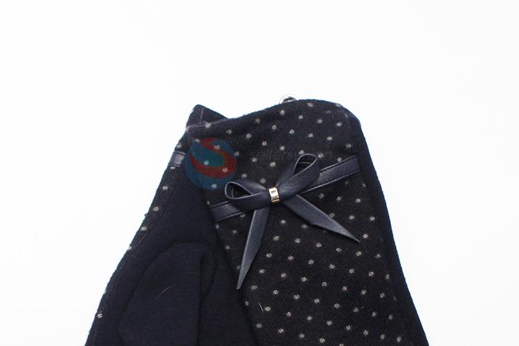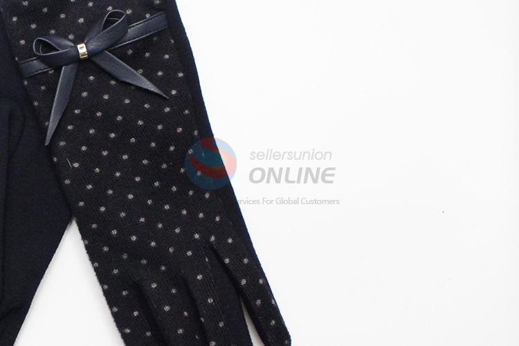 Dark Blue Dots Mirco Velvet Gloves with Simple Bowknot