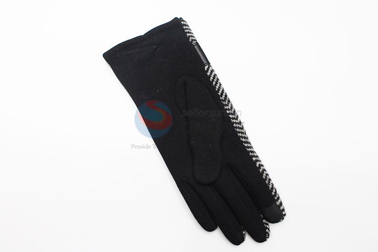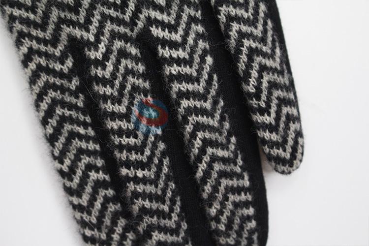 Black Ripple Pattern Wool Gloves with Bowknot