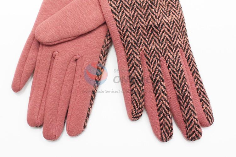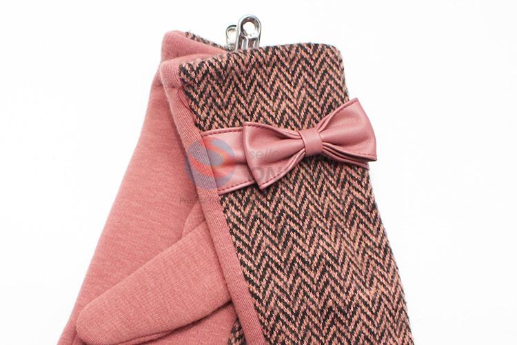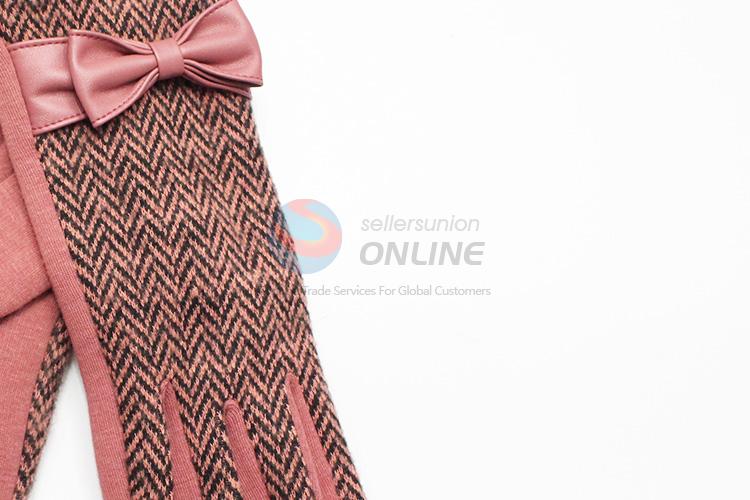 Pink Ripple Pattern Wool Gloves with Bowknot