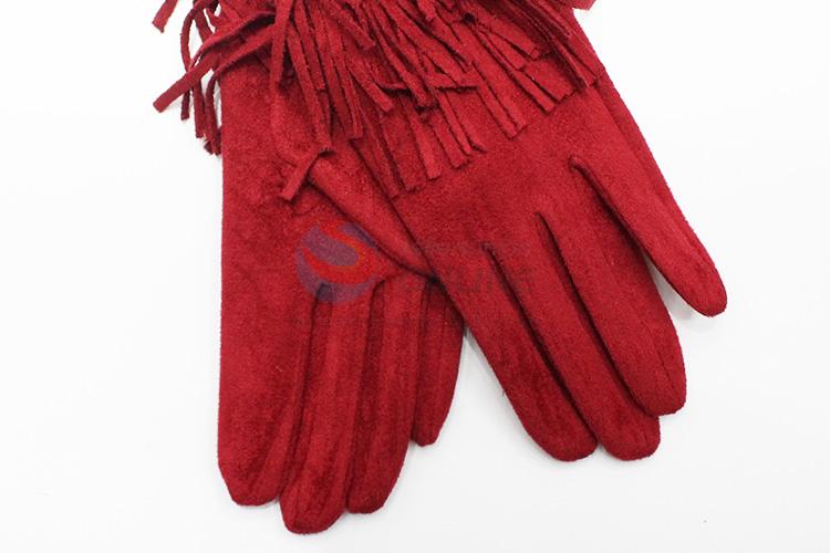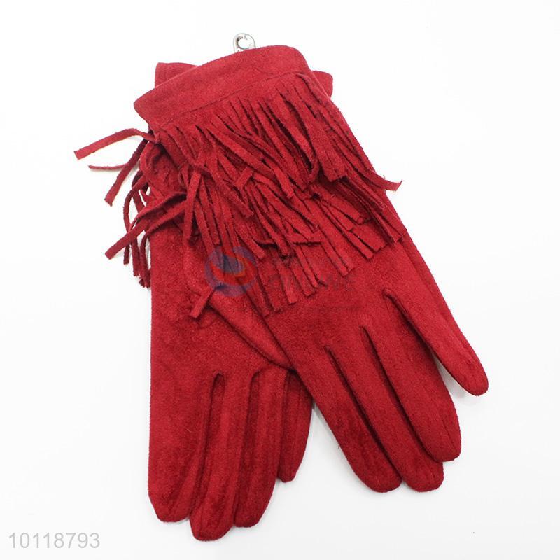 Fashion Women Simple Red Suede Gloves with Tassels