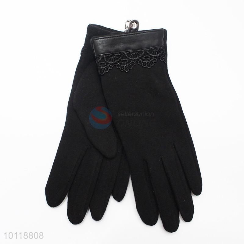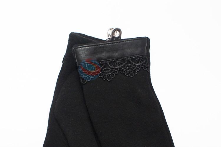 Women Black Mirco Velvet Gloves with Lace Decoration