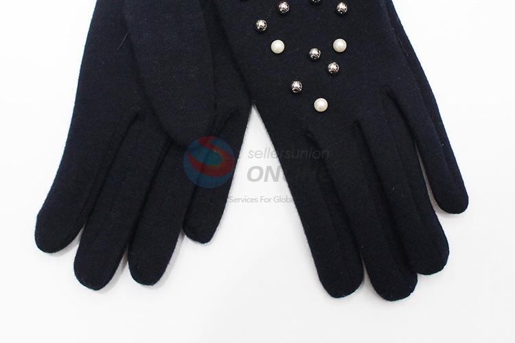 Fashion Dark Blue Mirco Velvet Gloves with Bead