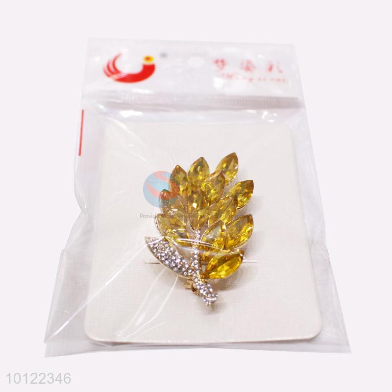 Leaf Shaped Crystal Brooch Pin with Cheap Price