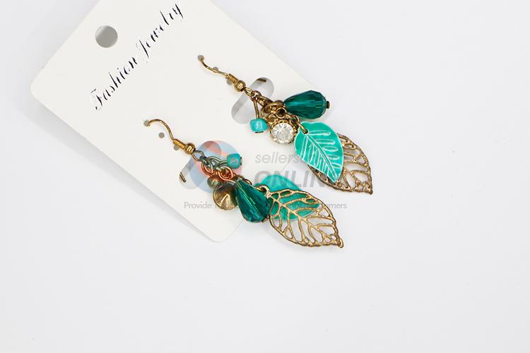 Green leaf shaped dangle earrings/crystal earrings