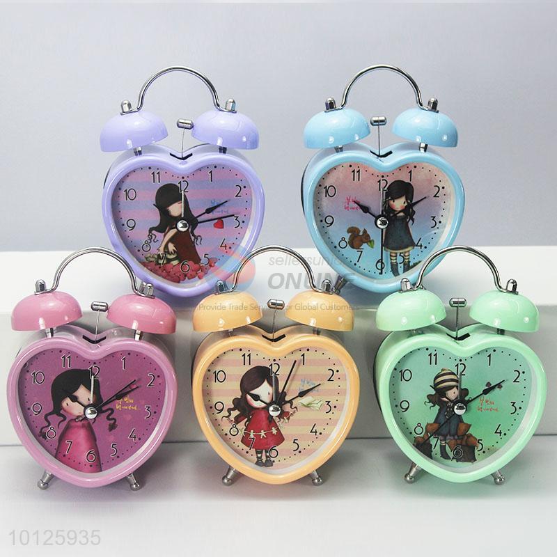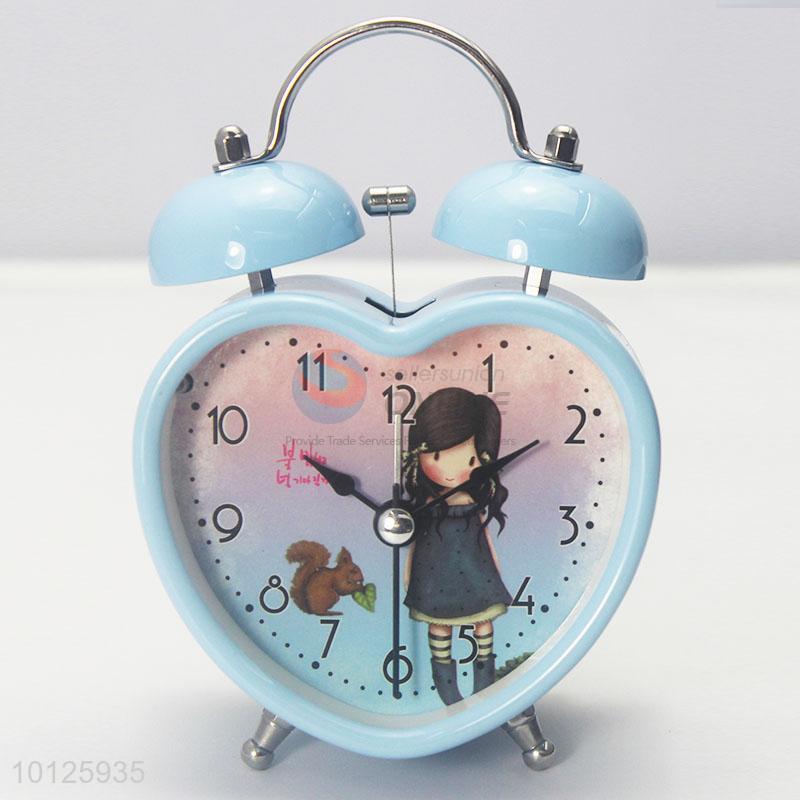 Blue Heart Shape Double Bell Alarm Clock