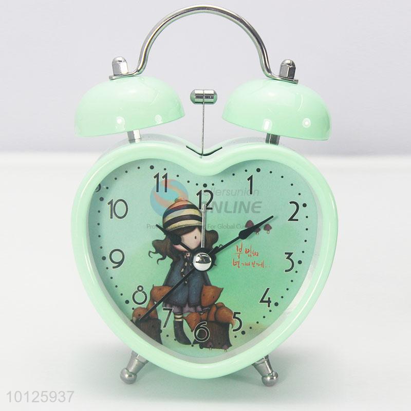 Green cartoon double bell table alarm clock