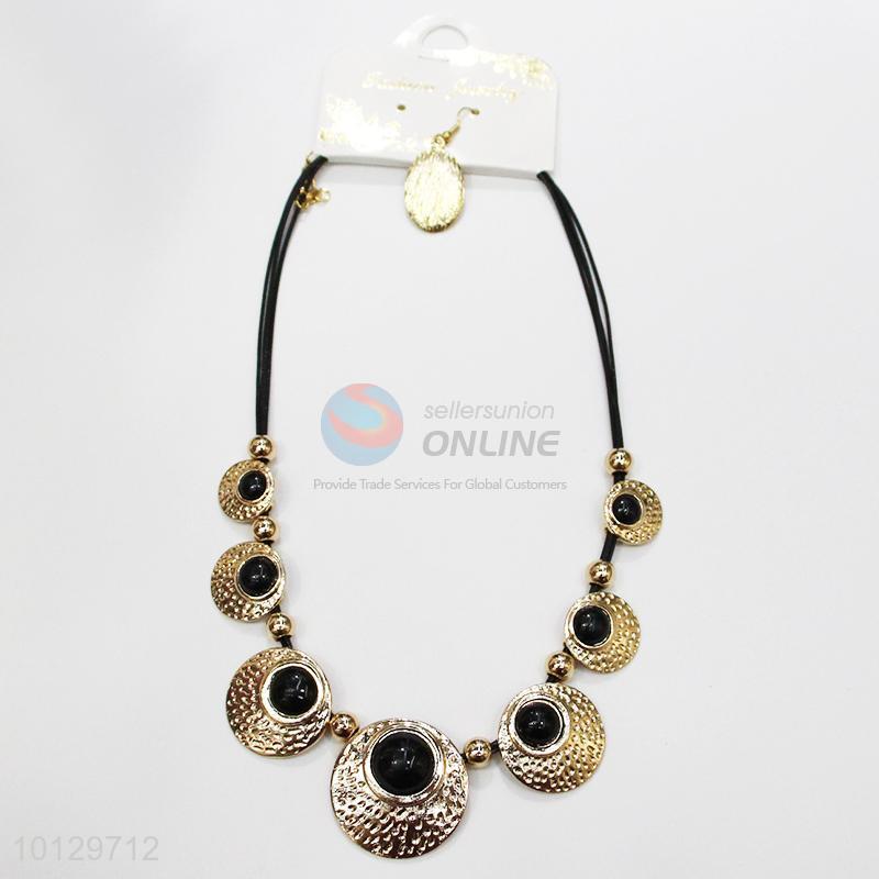 Gold hammered pattern round alloy necklace&oval textured earrings set