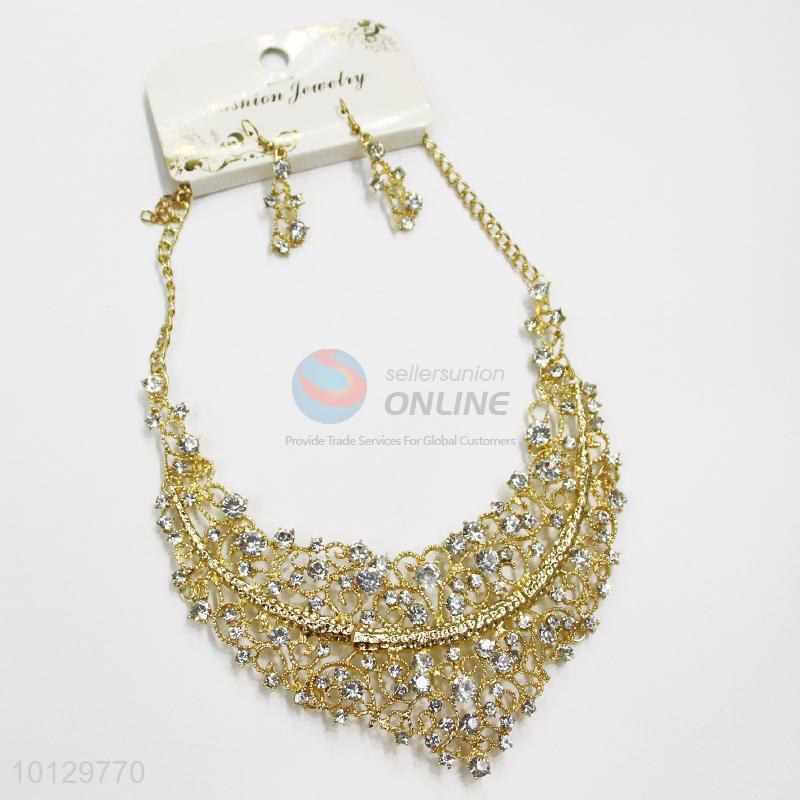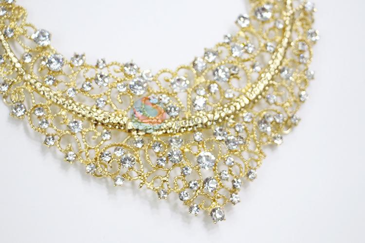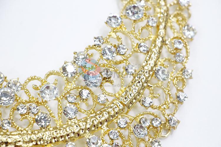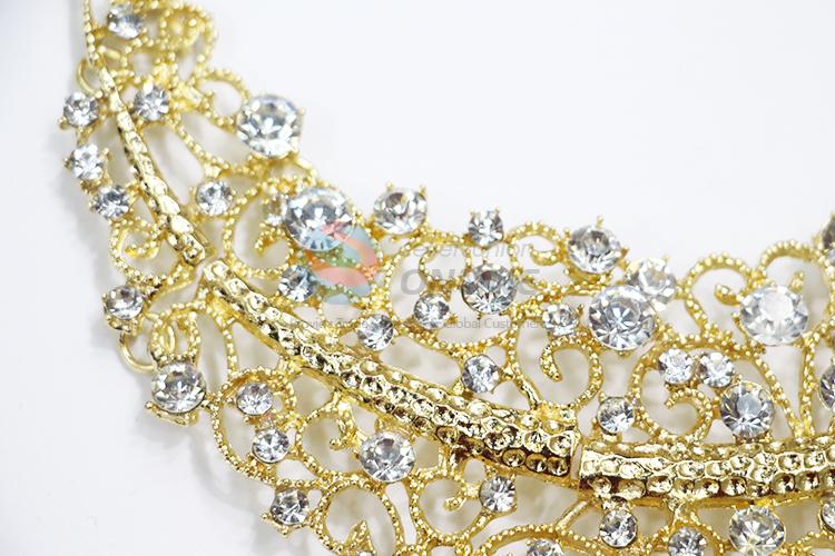 Super design hollow gold alloy necklace with clear stones