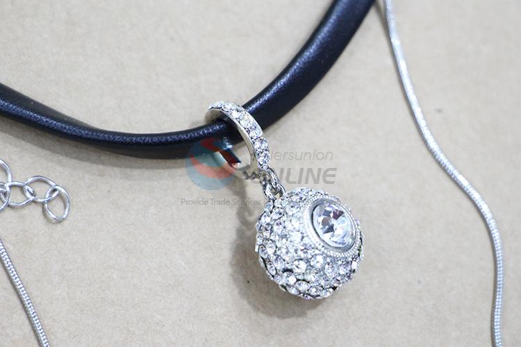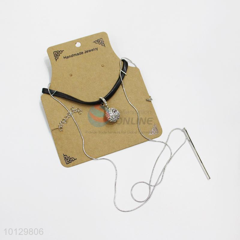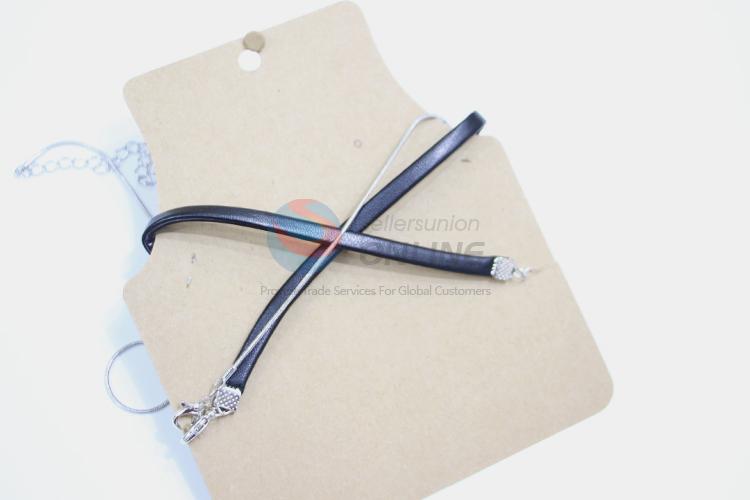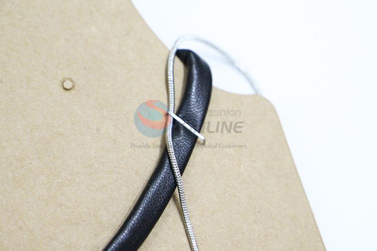 New design black artificial leather silver alloy pendant necklace