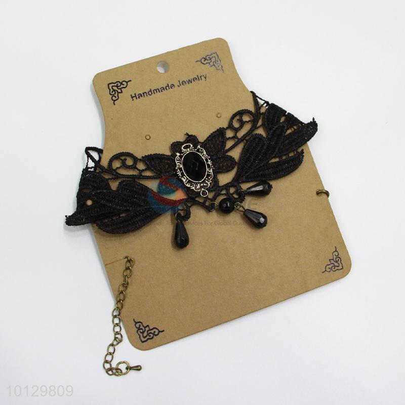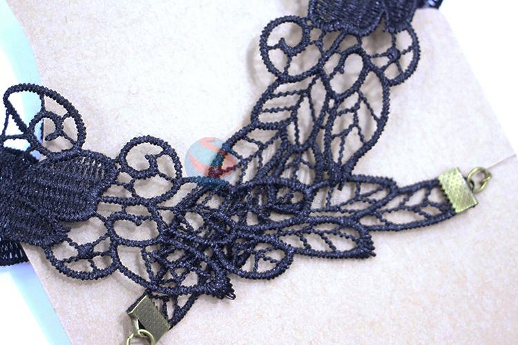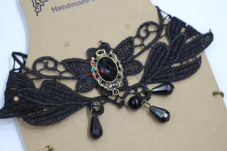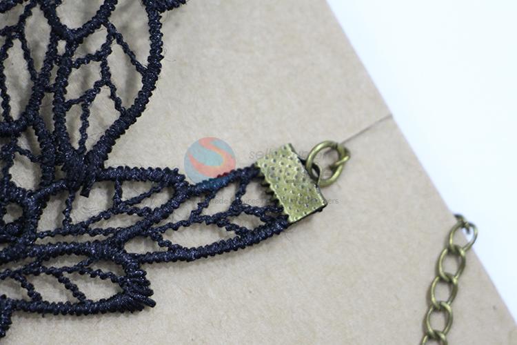 Black floral lace beaded alloy necklace