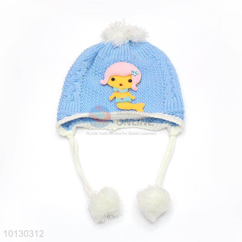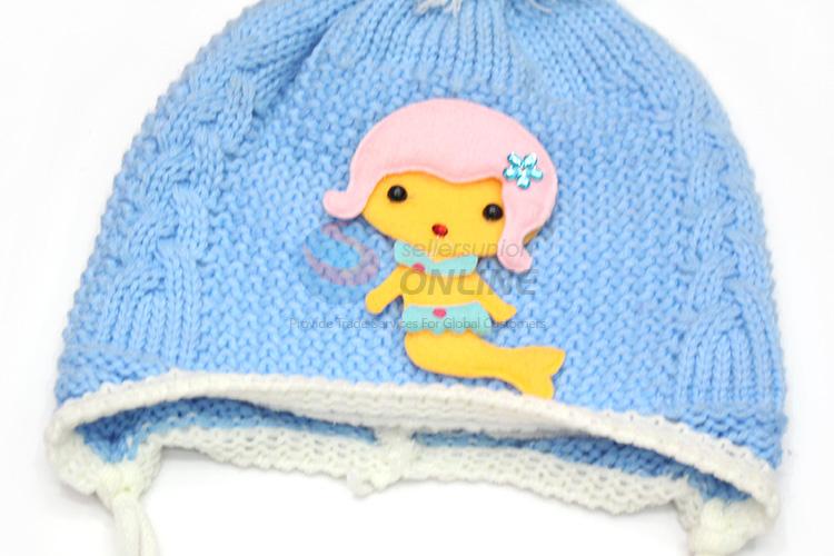 Blue Cartoon Winter Knit Ear Protection Baby Hat