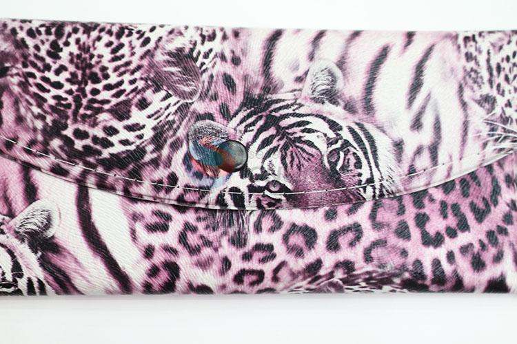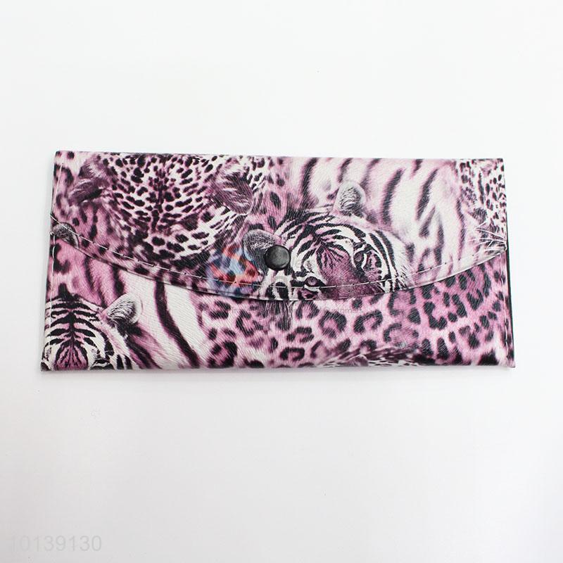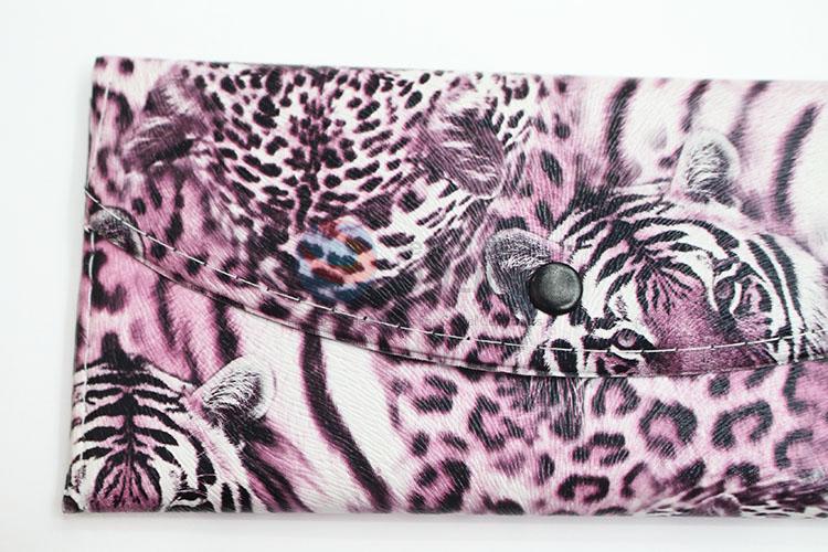 High Quality Leopard Leather Purple Long Wallet