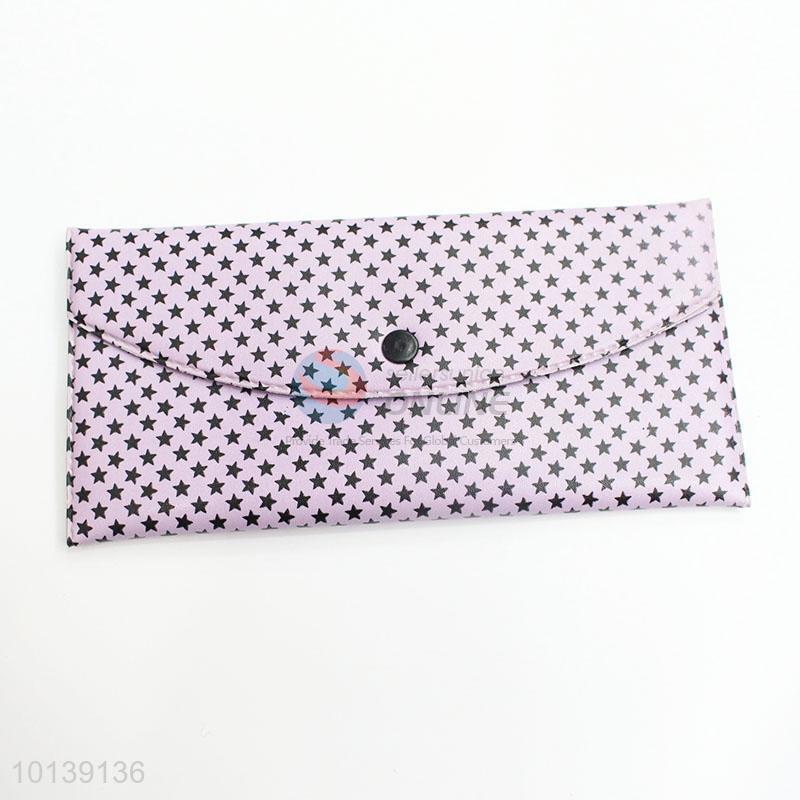 Elegant Purple Color Star Printed Women Long Leather Wallet