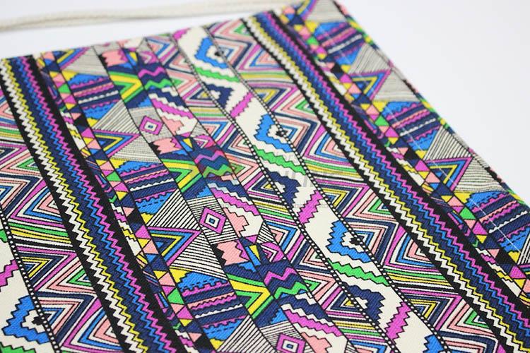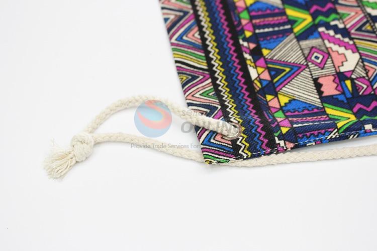 Fashion triangle printed linen backpack/storage bag/drawstring bag
