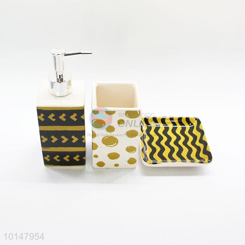 3 Pcs/ Set Modern Pattern Ceramic Bathroom Accessories Sets Hand Sanitizer Bottle+Dental Equipment+Cup+Soap Box
