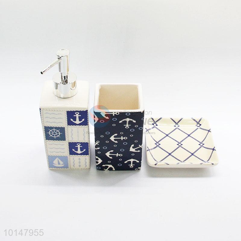 3 Pcs/ Set Cute Boat Anchor Pattern Ceramic Dental Set Bathroom Supplies Kit Toothbrush Holder