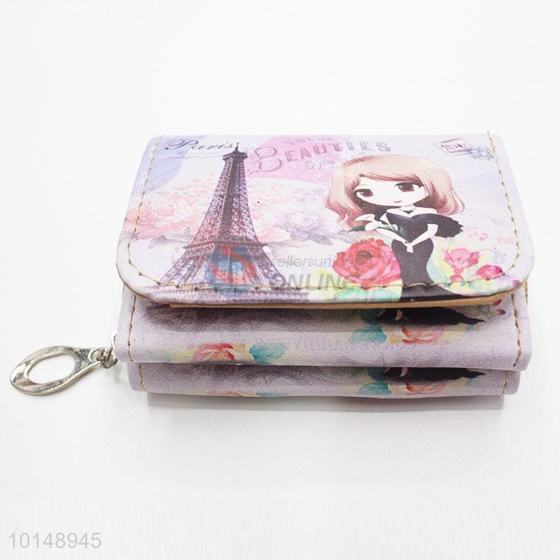 Big Ben and Flower Pattern Mini Wallet Three Fold Zipper PU Leather Clutch Bag