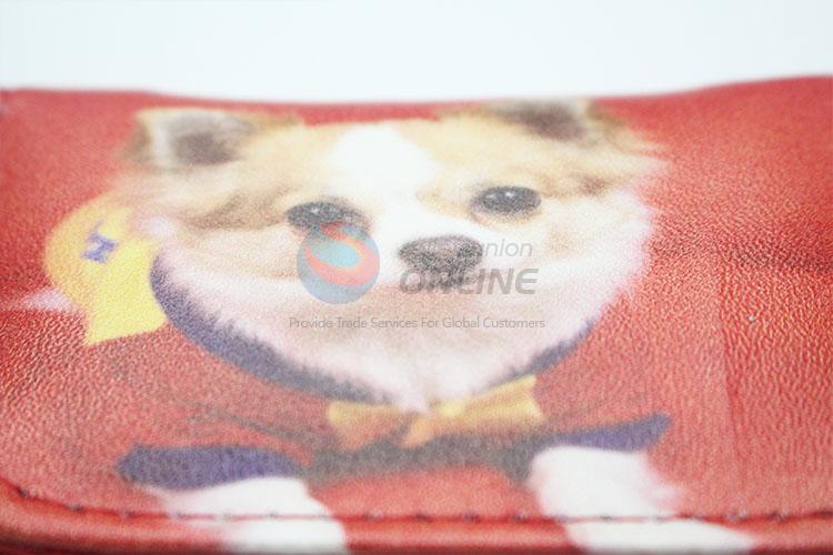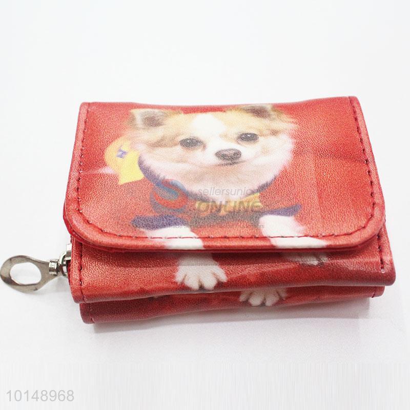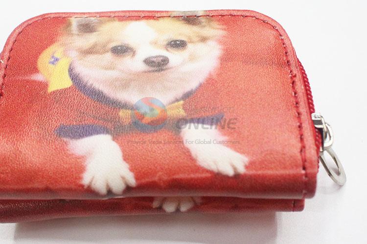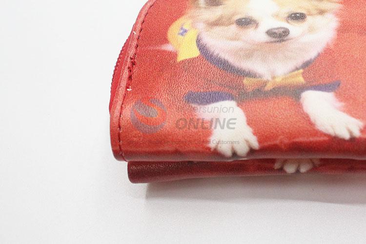 Red Color Cute Dog Pattern Mini Wallet Three Fold Zipper PU Leather Clutch Bag