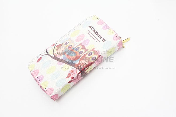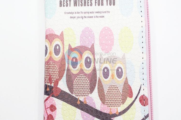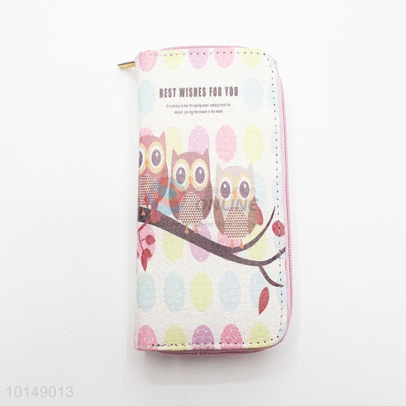 Cartoon Owls Printed Cute Long Wallets Multi-purpose Pouch PU Leather Hasp Purse