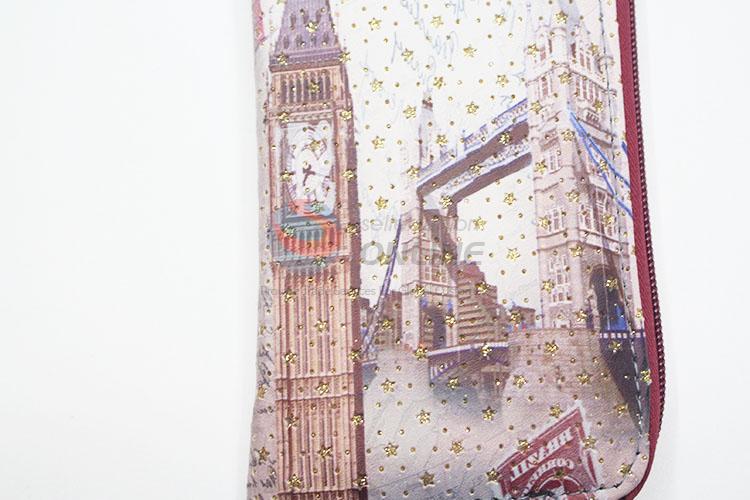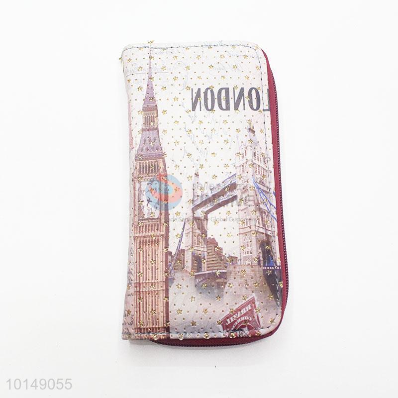 Glitter Star Big Ben Printed Zipper Long Wallet PU Leather Purse Ladies Clutch Card Holder