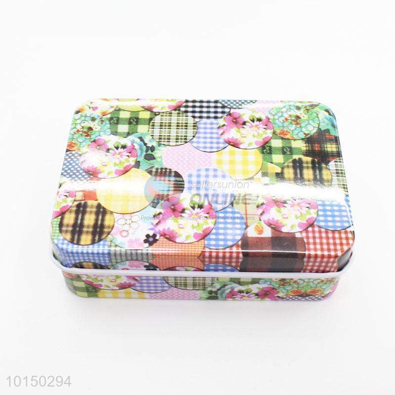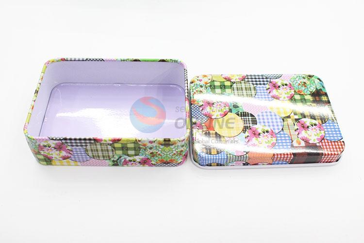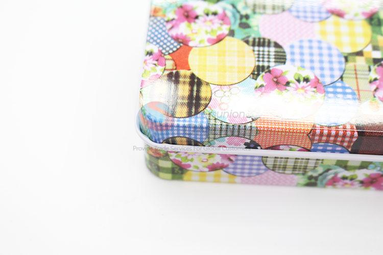 Colorful Flower Printed Rectangular Shaped Tinplate Shape Storage Tin Box Coin Bag Jewelry Box Lovely Print Storage Box