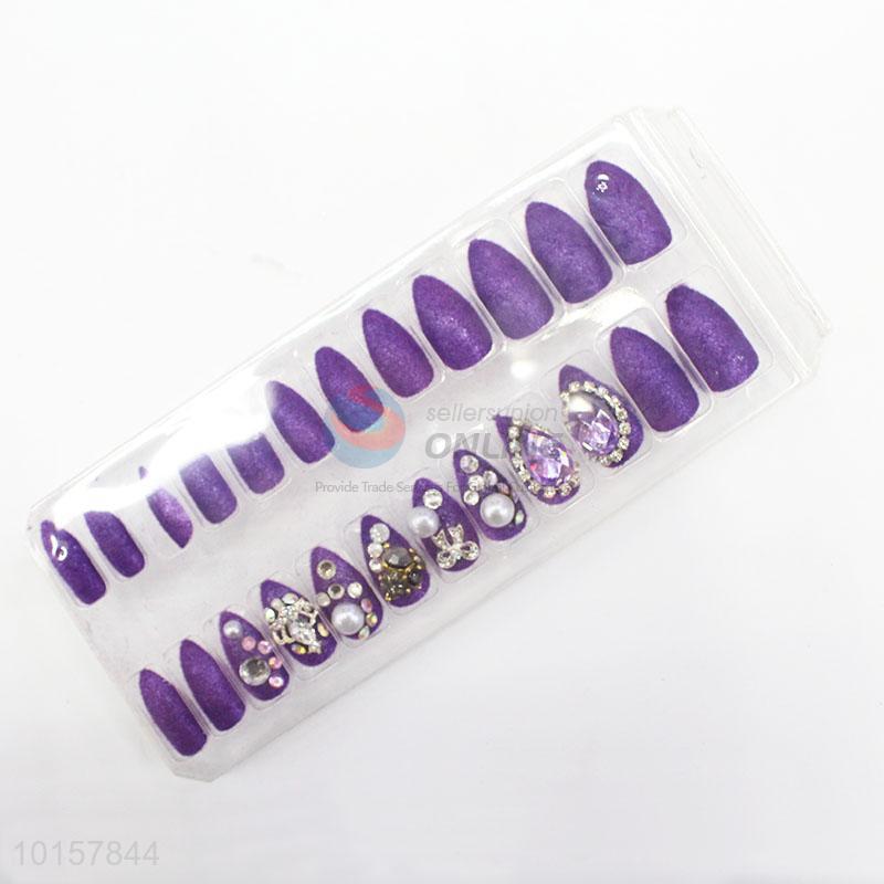 Purple Rhinestone Nail Decoration Artificial Fingernails