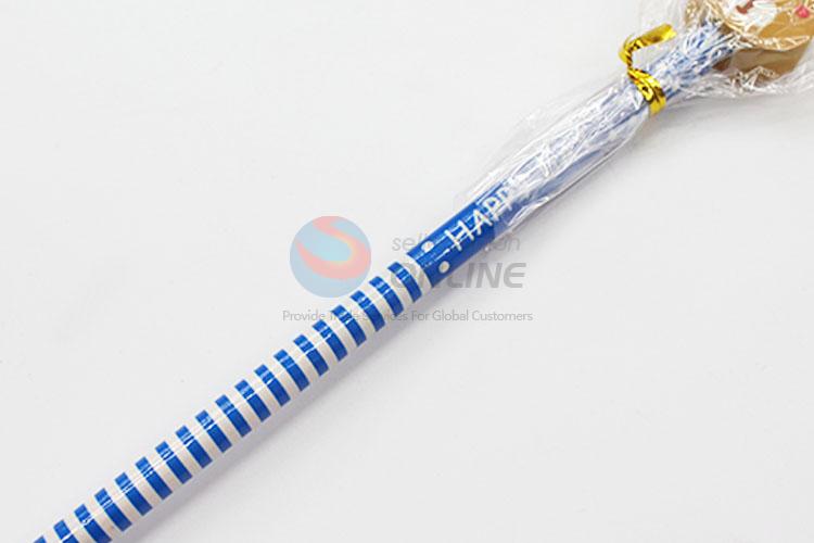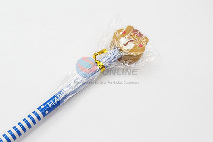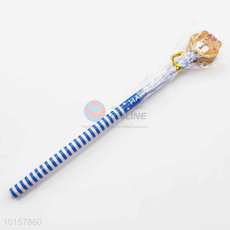 Cute Blue Stripe Printed Pencil with Cartoon Bear Shaped Eraser Stationery for Kids