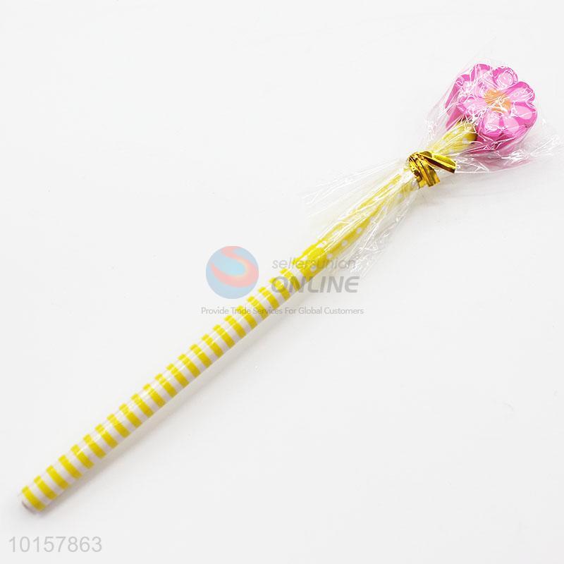 Cute Yellow Stripe Design Pencil with Flower Shaped Eraser Stationery for Kids