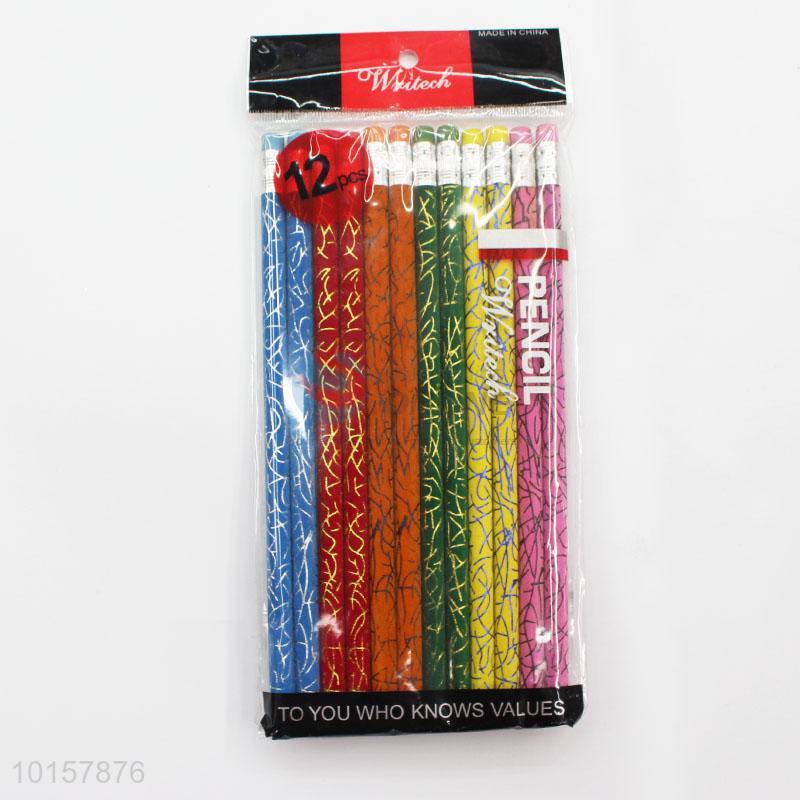 12 Pieces/Bag Cute School Classic Novelty Writing Wooden Pencil with Eraser