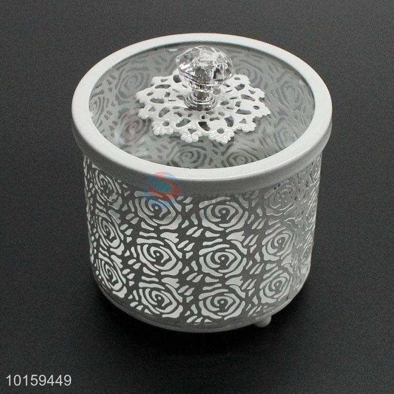 White Metal Cake Holder Storage Box With Glass Cover