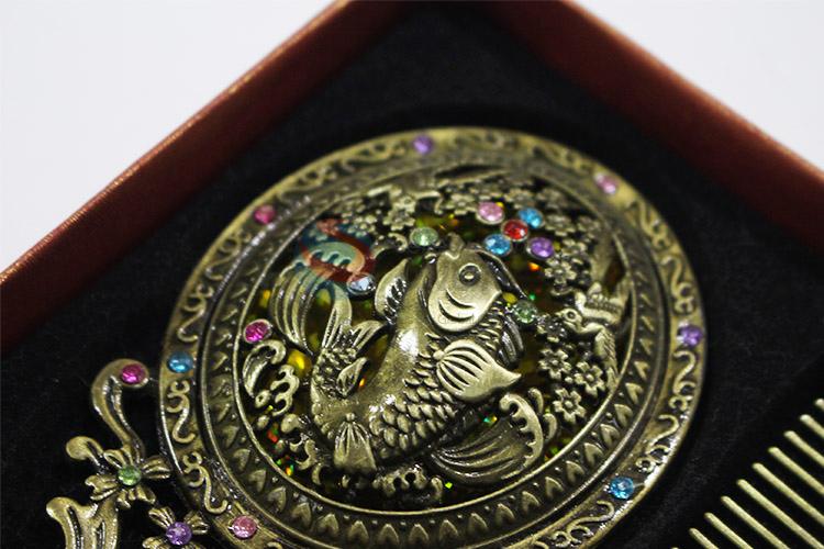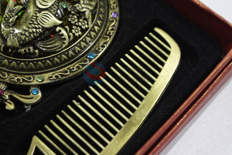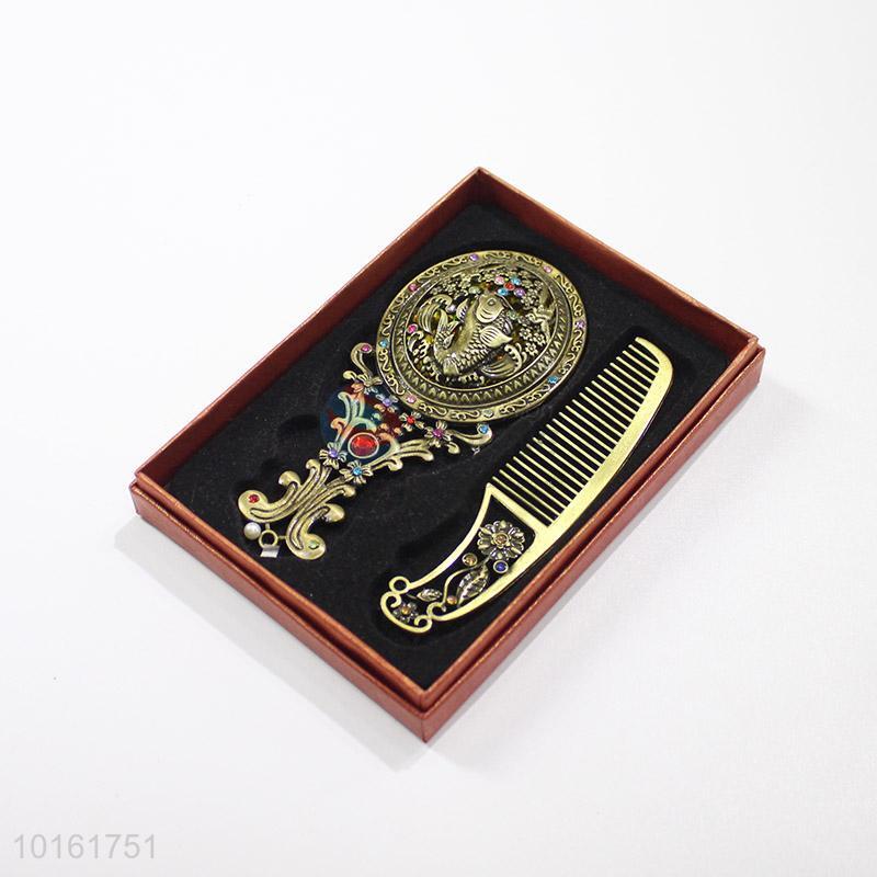 Promotional customized retro colorful stone mirror and comb set