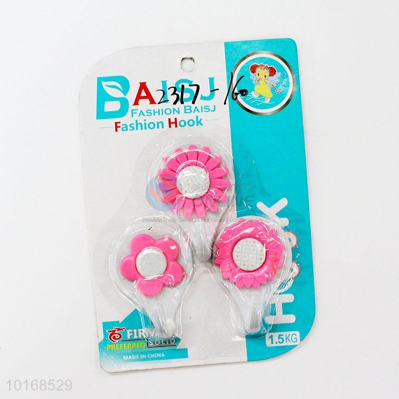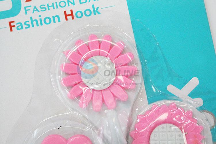 Pink Flower Kitchen Bathroom Plastic Adhesive Wall Hook Stick Hook