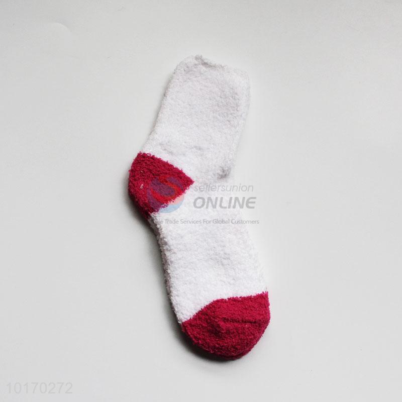 Wholesale White and Red Polyester Socks for Keeping Warm