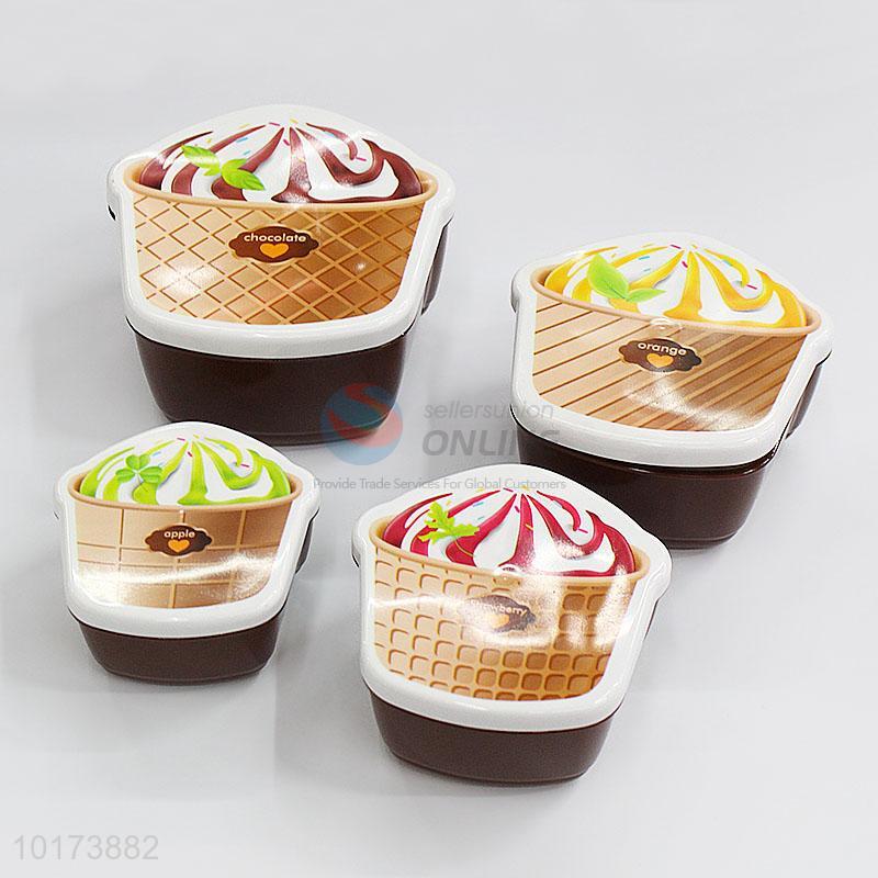 Household Pretty Cute Ice Cream Shaped Plastic Preservation Box, 4Pieces/Set