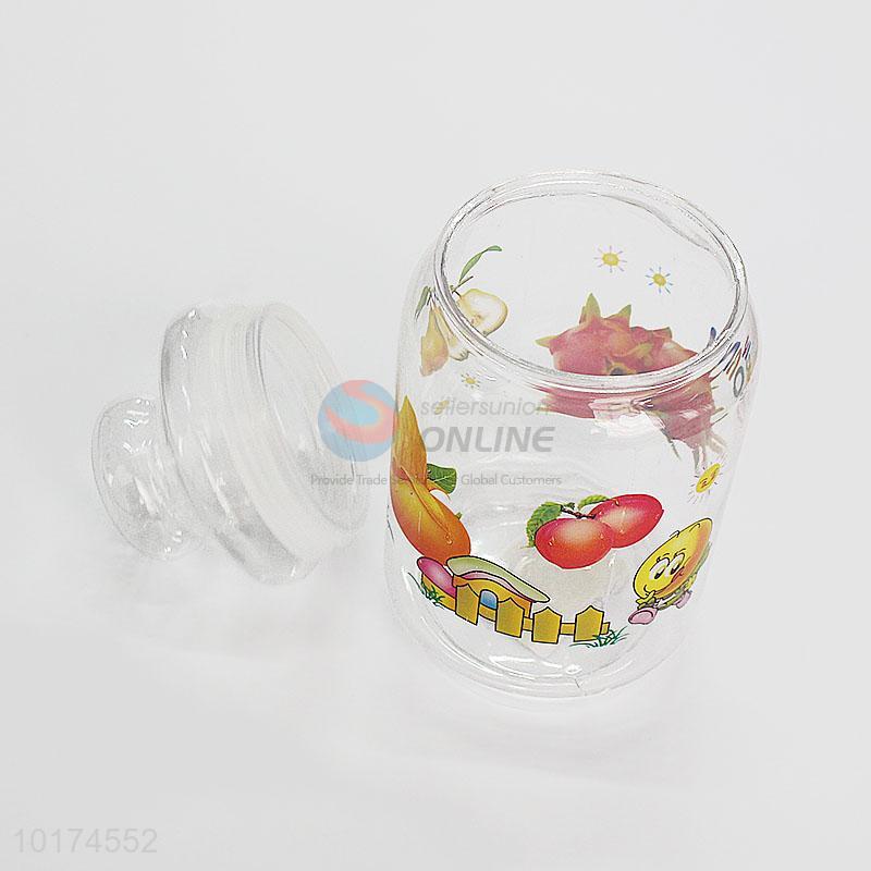 Factory Direct Plastic Transparent Candy Jar with Fruits Pattern