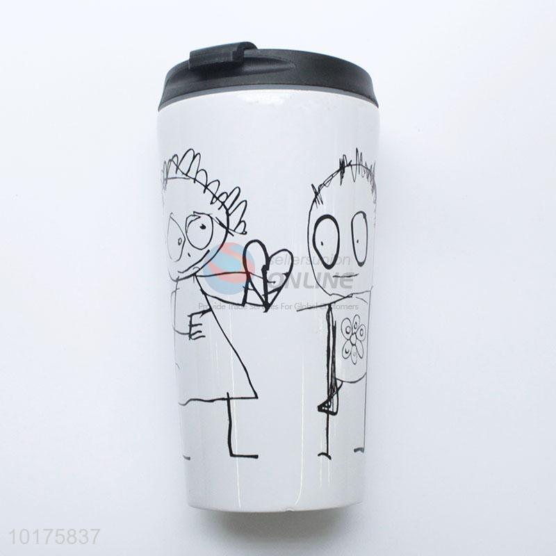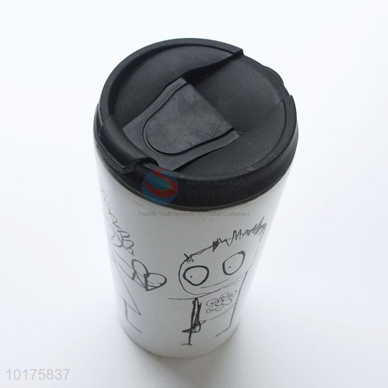 White Color Lovely Graffiti Pattern Stainless Steel Water Bottle