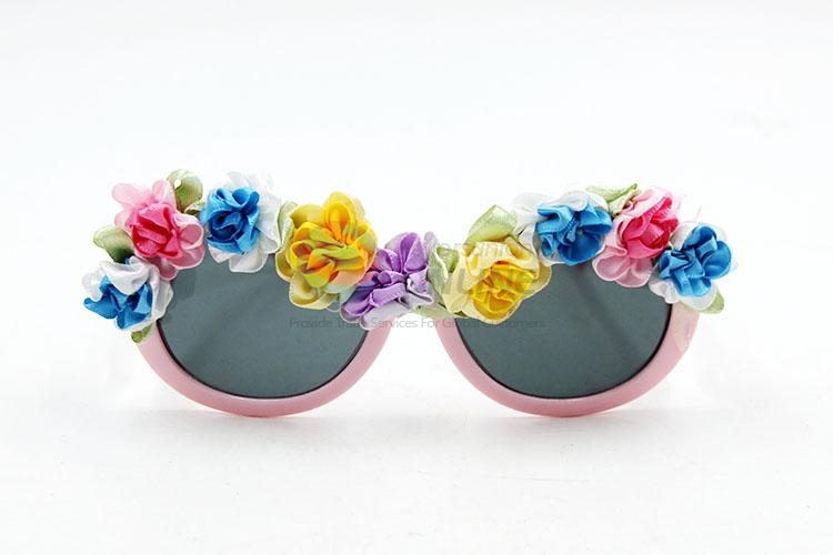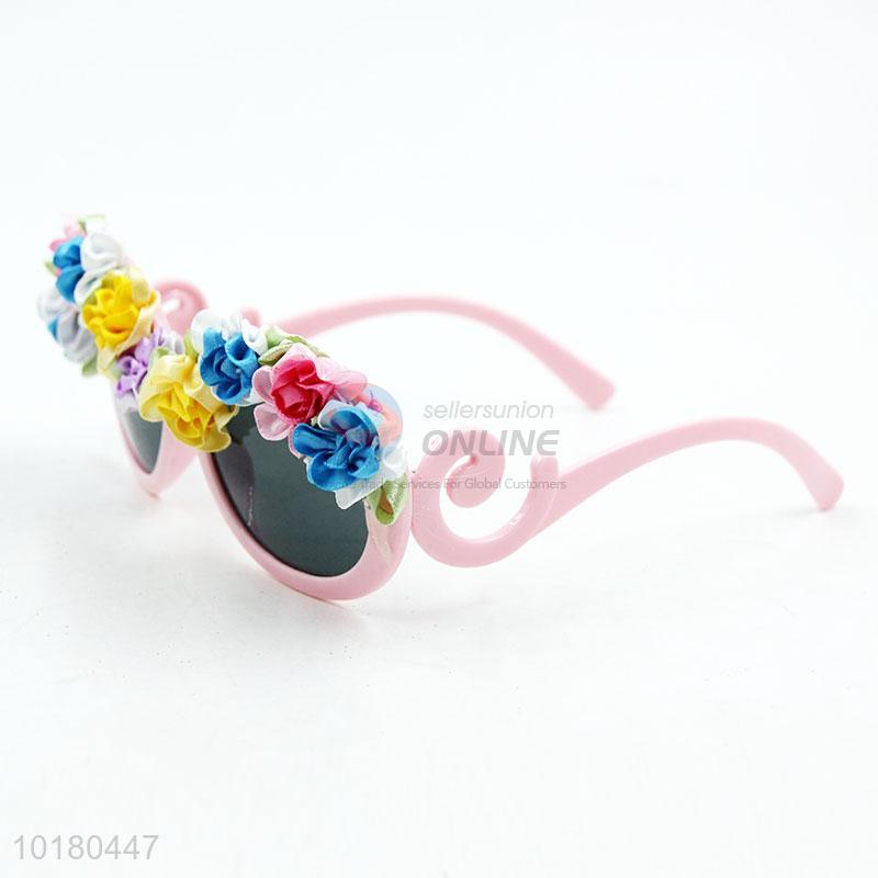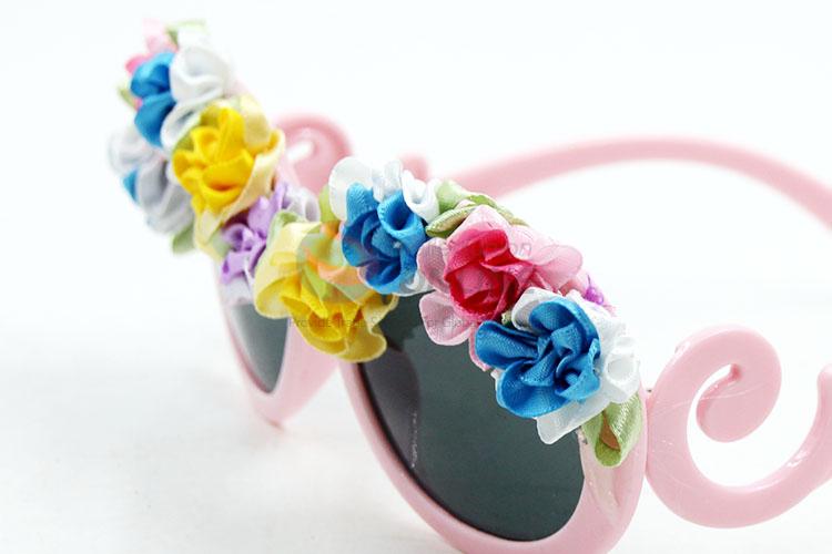 Pink frame silk flower decorative sunglasses for girl