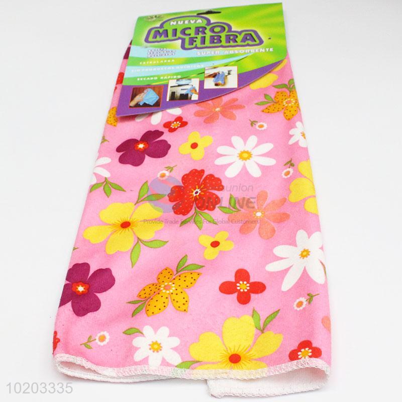 Facotry price pink flower printed microfiber towel