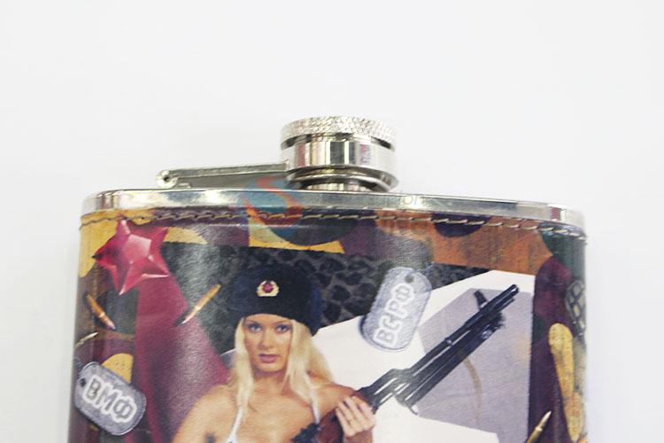 Fashion Lady Printed High Quality Stainless Steel Plastic Hip Flask
