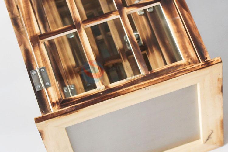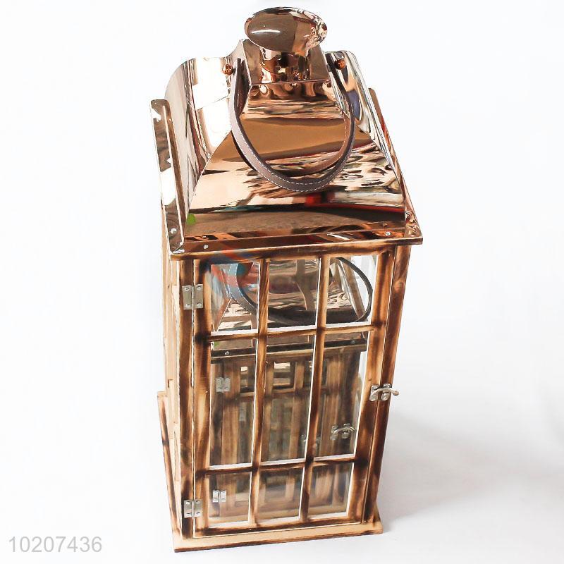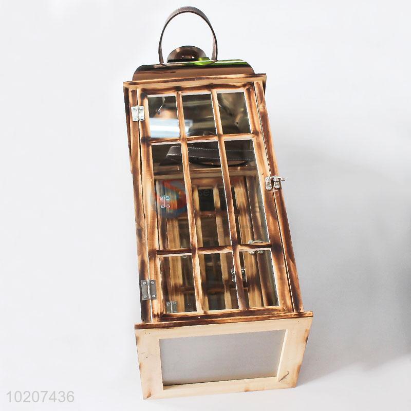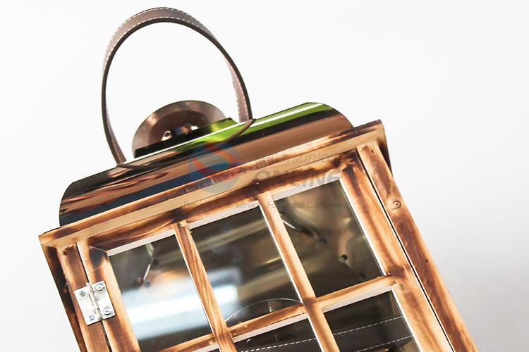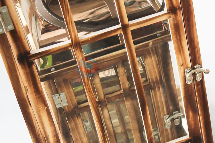 Garden Home Decoration Hanging Wooden Candle Lantern with Glass Cover