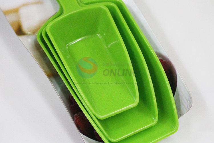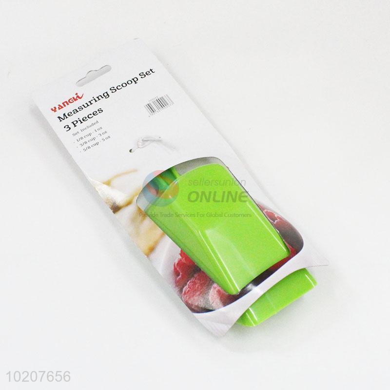 Hot sale 3 pieces plastic green measuring scoop